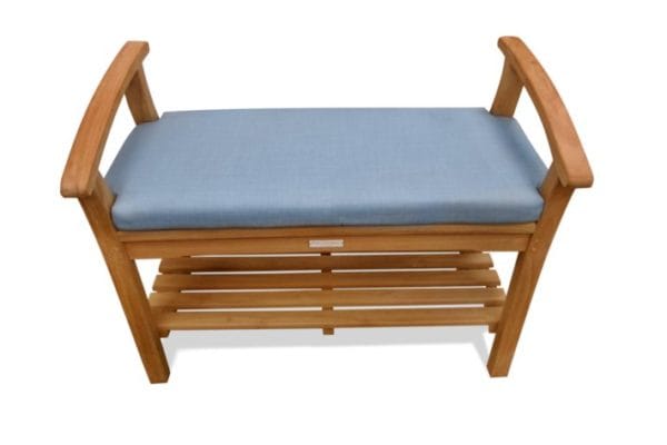 Grade A Teak 36″Backless Bench w/ 20″ High Contoured Seat (2.5″ higher then most benches) w/Arms for Easier Lift , and Shelf, By Windsor